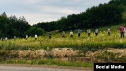 У подножия горы выстроилась живая цепь из местных жителей и приехавших поддержать их активистов.